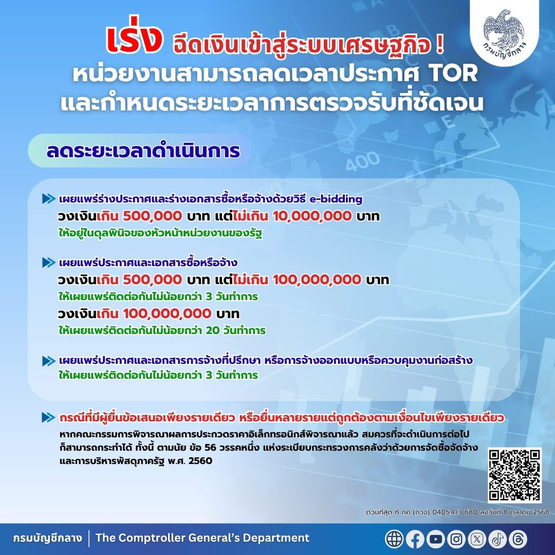 หน่วยงานสามารถลดเวลาประกาศ TOR และกำหนดระยะเวลาการตรวจรับที่ชัดเจน เผยแพร่เมื่อ: 20 ตุลาคม 2568 เขียนโดย admin ฮิต: 12 หมวด: ข่าวประชาสัมพันธ์